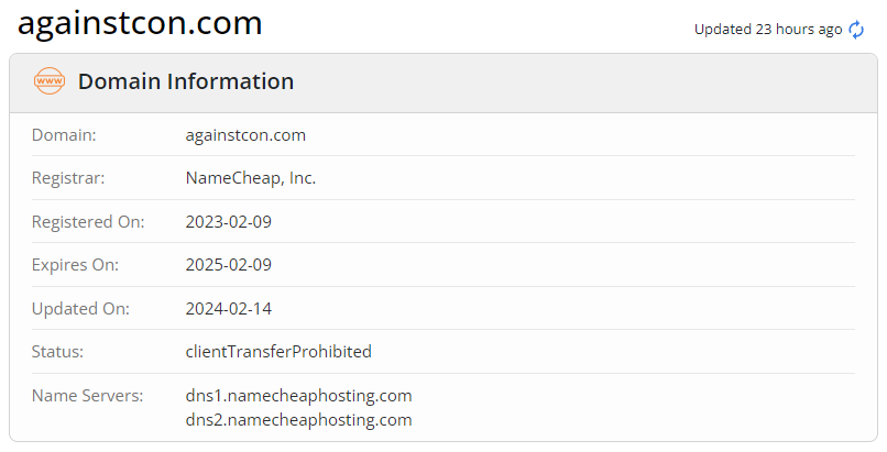 And the final warning sign is the company’s operational history. The website claims the company has “30 years of experience”, but this is an obvious lie. The domain againstcon.com was registered on February 9, 2023. How could the company operate for 30 years without a website?
