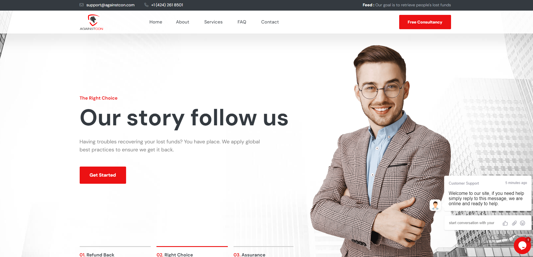 According to information on the official website, Againstcon is supposedly an American company with headquarters in New York, and the phone number provided is listed as American. They also offer the option to contact consultants via online chat or email.