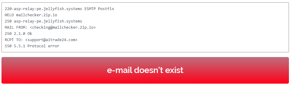 The main contact method, aside from the phone numbers, is an email address. We verified it through several independent services — the mailbox doesn’t accept incoming messages. In other words, it’s fake. There is no real way to contact the broker. This is a common tactic among shady platforms: a contact channel appears to exist, but in reality, clients have no way to reach an actual person.