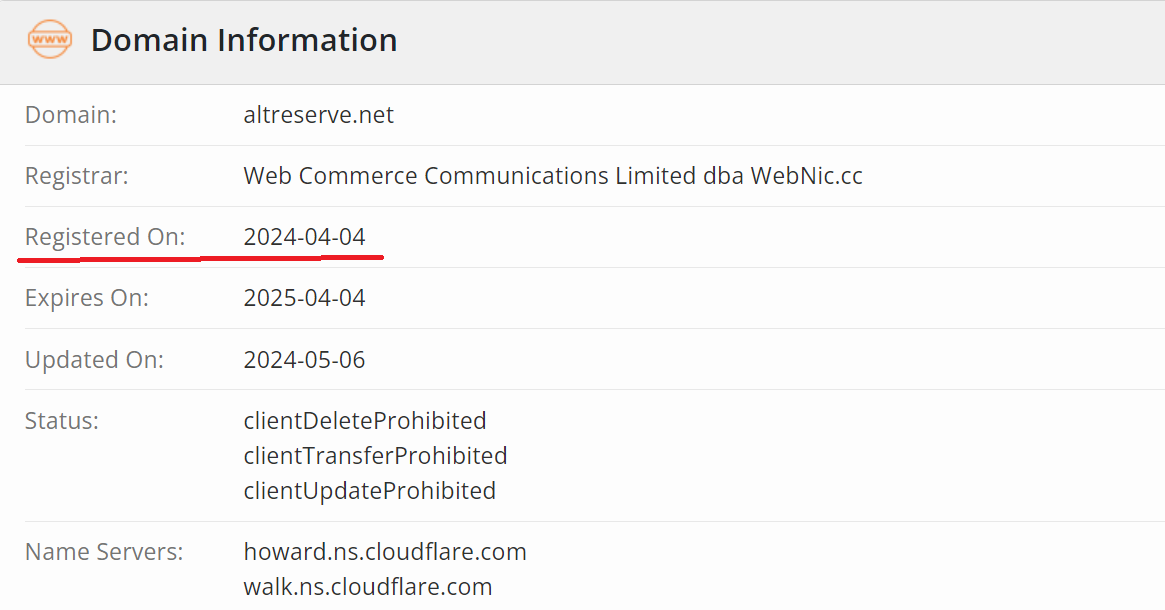 According to the Whois service, the domain currently in use, altreserve.net, was registered on April 4, 2024. A little earlier, on March 29, 2024, the domain altreservegroup.net, used for the company’s mail server, was registered. This means the platform has only existed for about six months. Any claim of a 2020 launch is out of the question; this date is being used to mislead traders.