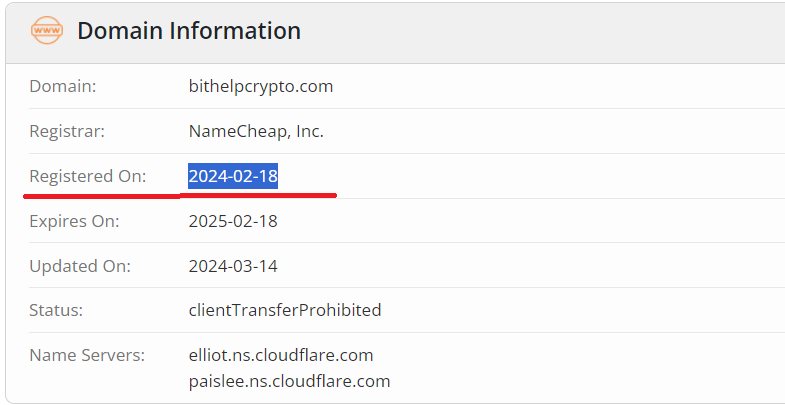 Verification of the service’s existence also yielded interesting results. According to whois data, the domain bithelpcrypto.com used by the firm was registered on February 18, 2024.
