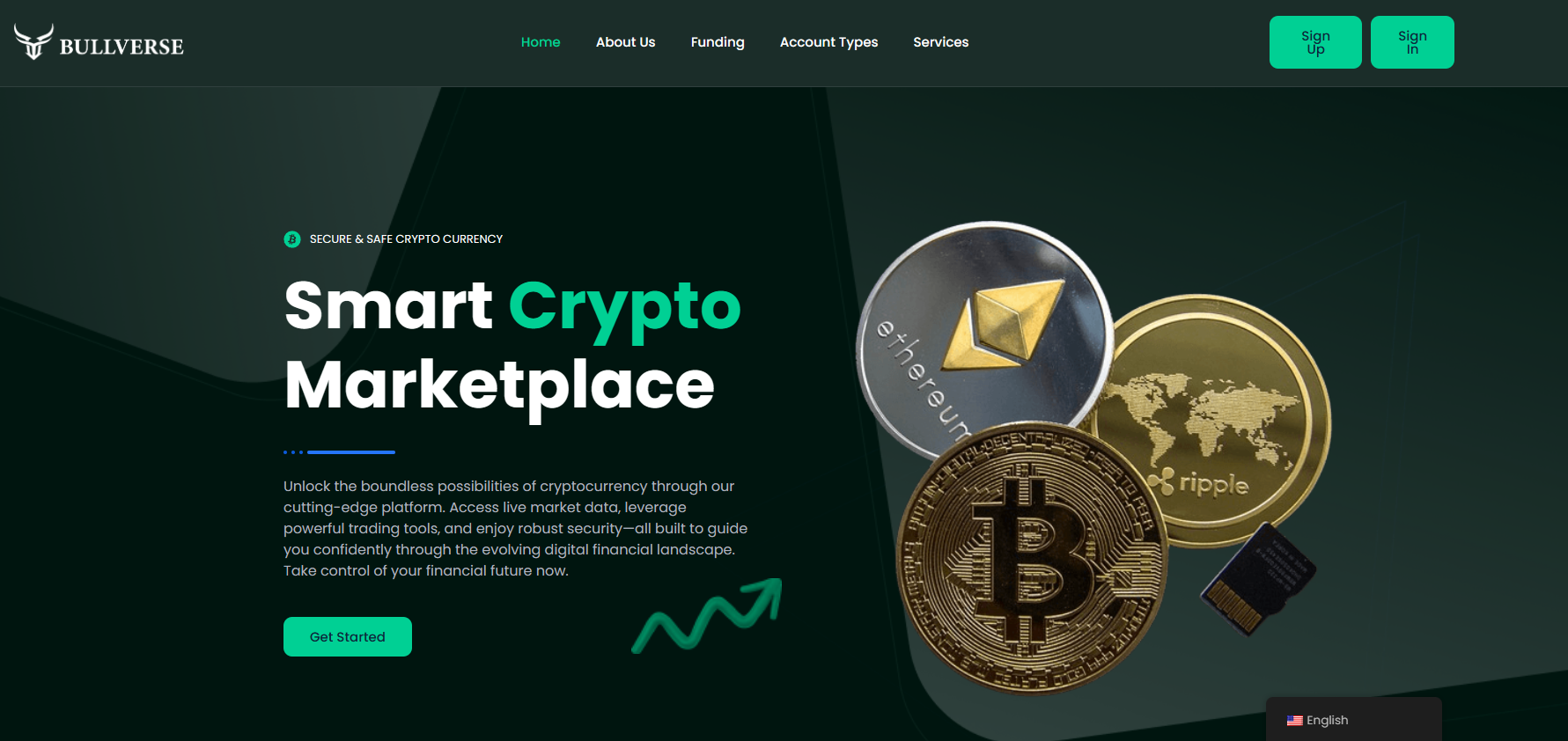 The review begins with the company’s official website. At first glance, the design looks somewhat modern: a dark background, green accents, and images of Bitcoin and Ethereum. Nothing new, but it is obvious this is just another template used by most fraudulent brokers. The pictures are stock photos, lacking originality, and the overall style screams “slapped together”.