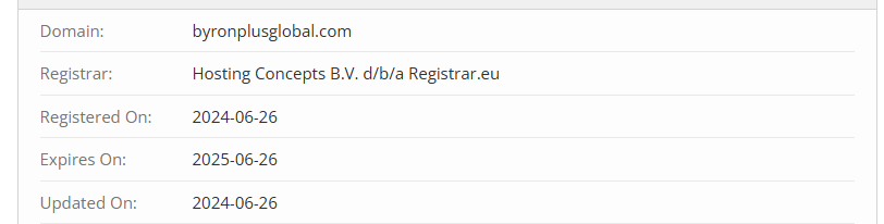 We didn’t even have time to post this review, as it turned out that the platform is now on the site https://byronplusglobal.io/. By the way, it was registered literally today (when we have updated this article), namely November 14, 2024. How do you like it?
