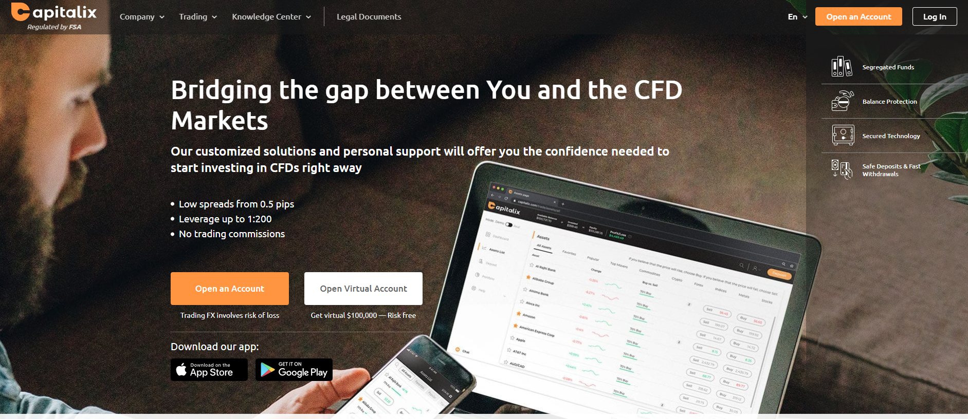 The images are generic — just people in business attire staring at a laptop screen or a smartphone display. One plus is that the Capitalix website is available in multiple languages. It also includes trading conditions and legal details, which means there’s nothing to criticize in that regard.