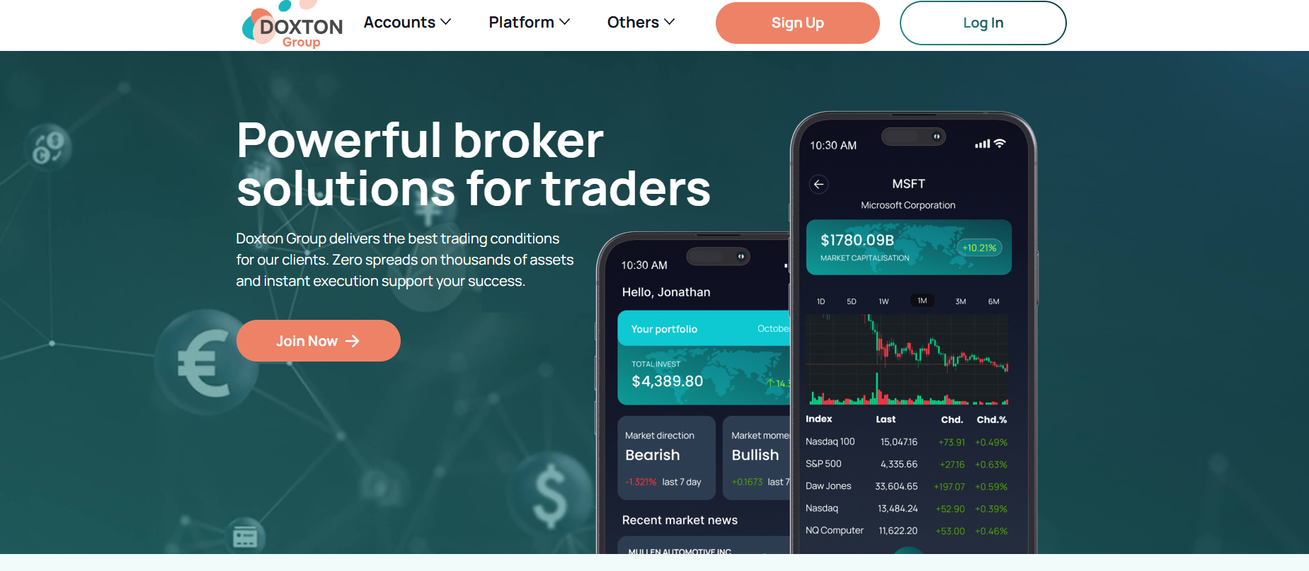 The visual design is also disappointing. The green-and-blue background with dull elements doesn’t just look unattractive — it’s utterly lifeless. And those orange buttons? They’re like a red flag to a bull, but not in a good way. What’s with the images of smartphones displaying graphs and millions of dollars? Why use such visuals? It’s as if Doxton Group selected stock images from the first page of Google search results.