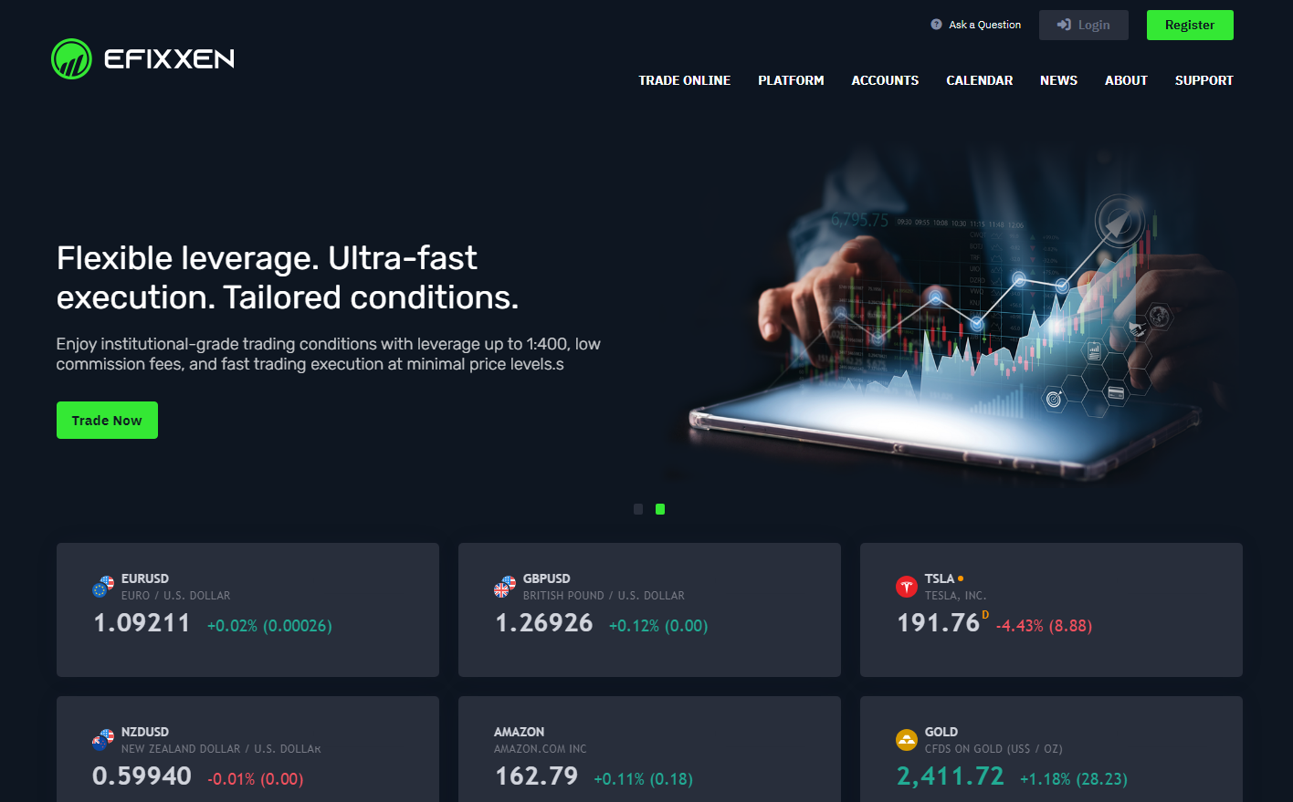 The size of commissions at Efixxen remains a mystery, they are only described as “Low”. The spread sizes and their types are also unknown, yet the firm promises lightning-fast execution and more than 500 assets for trading. The leverage offered is up to 1:400, which means the platform cannot be licensed by serious regulatory bodies.