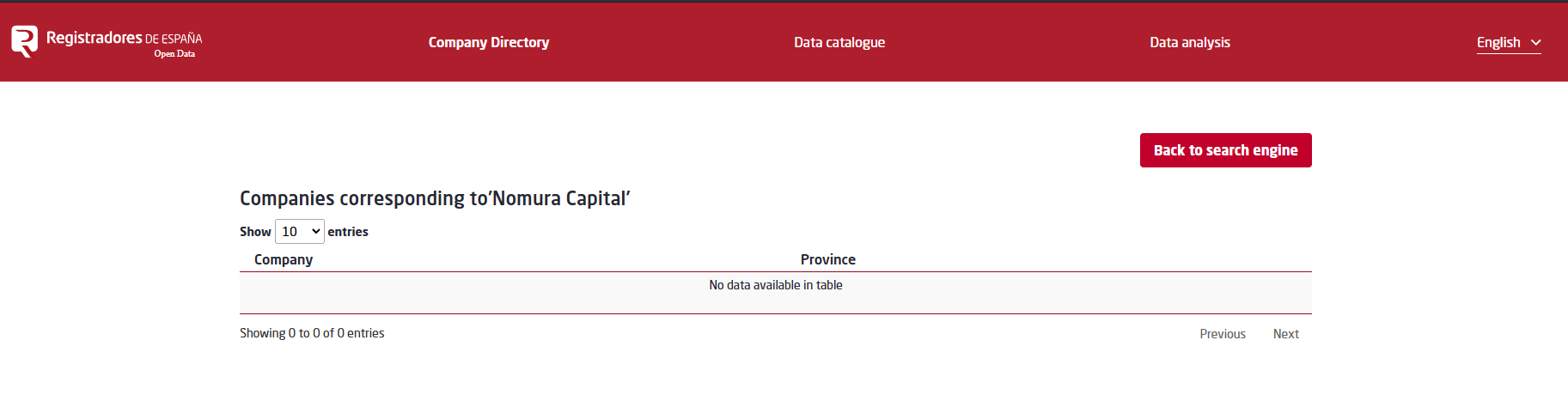 Finecsa shares the address of its office in Spain. Additionally, in the footer, the legal entity Nomura Capital LTD is listed, alongside Saint Lucia. We checked the Saint Lucia registry and can confirm that such an organization exists there. Then we checked the registry of legal entities in Spain — opendata.registradores.org. However, our subject is not listed there. We even tried to find Nomura Capital LTD — it is not registered either.