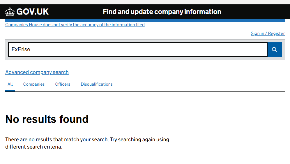 FxErise claims to be registered in the United Kingdom, but this is a blatant lie. A proper verification showed that no company with this name exists in the UK’s legal registry (Companies House). This means the address they provided on their website is fake. They could claim to have an “office in central London” or even a “headquarters in the Burj Khalifa” — it would not change reality. They do not exist there.