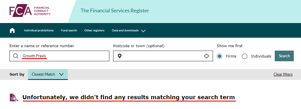 The lack of regulation is explained very simply. The London address is fake; in reality, Growth Praxis is not registered in this jurisdiction. A check of the Companies House legal register confirmed this. There is no such organization, only ones with similar names.