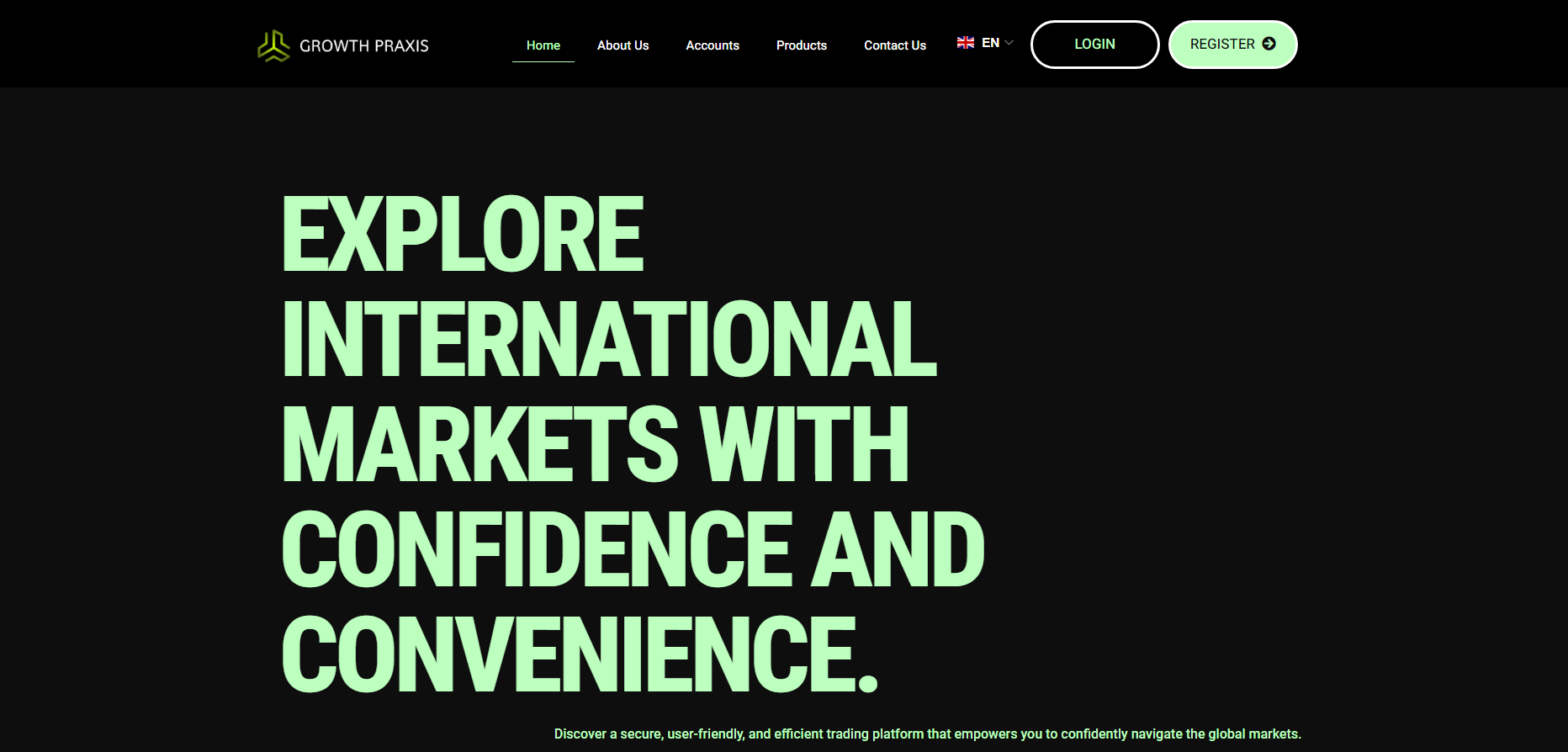 If there were a nomination for the worst official website, Growth Praxis would take first place. It is a typical resource for a broker, where the top of the page contains a panel with basic information, the main page features a boring list of pseudo-benefits, images of bulls and bears symbolizing market participants, and a standard risk warning in the footer.