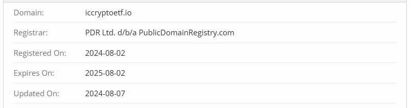 Another crucial point is their operating history, which scammers prefer not to talk about. However, it’s easy to check when their platform was launched. A simple domain lookup for iccryptoetf.io reveals the answer — August 2024. The domain is registered until August 2, 2025, but it’s unlikely that the fraudsters will bother renewing it.