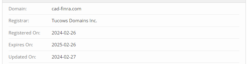 That’s exactly what we did: we went to the FINRA register and searched for Infinity Wealth LTD. Several organizations were found, but none of them were connected to the website infinitywealthltd.com. This means that this broker is not actually listed in FINRA’s database. Moreover, the domain cad-finra.com, which was registered only in February 2024, raises suspicion. It’s a fake website. This is why you should always conduct independent checks instead of trusting the information provided on the company’s website.