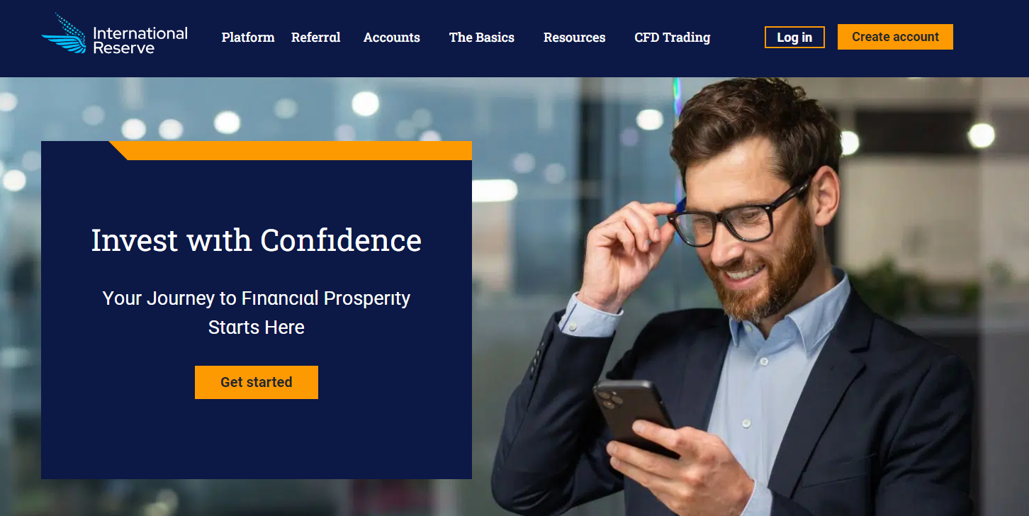 At first glance, the site’s design seemed interesting to us. The bright, rich blue and orange corporate colors look attractive. Short presentations of services, which are made in black font on a white background, alternate with inserts of blue color with light logos of world leaders in the field of crypto trading, which supposedly trust InternationalReserve. However, the text content was disappointing with its lack of information.