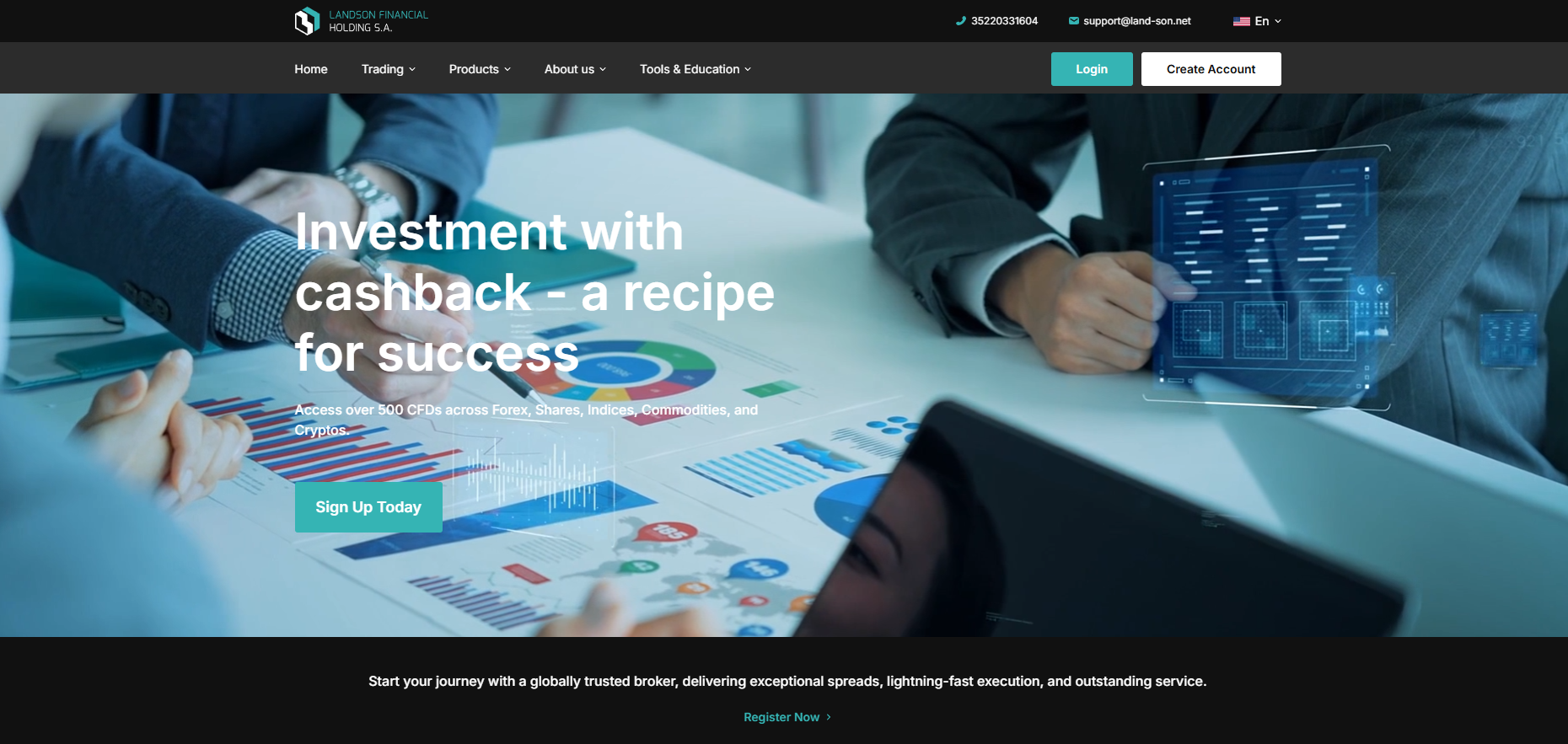 The company promises access to more than 500 trading assets, cashback, tight spreads, and a high level of security. However, is everything as great as Landson Financial Holding SA describes, or is this yet another scam attempting to lure naive traders into its trap? Considering the limited number of reviews available online, it seems more like a fake brokerage platform.