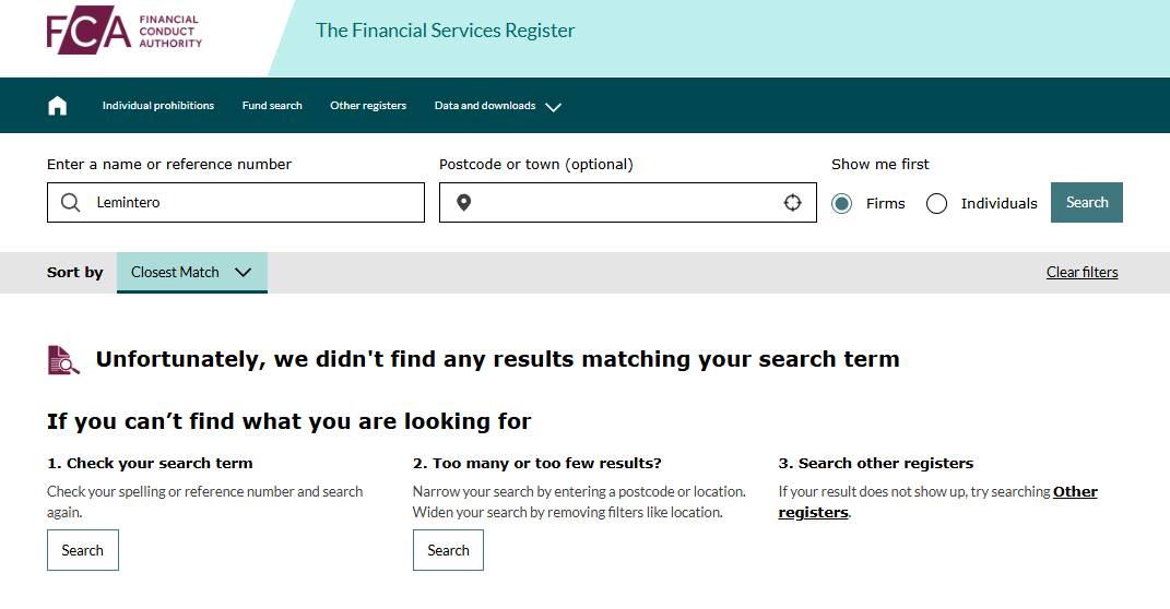 Serious brokers always provide legal details, display registration numbers, and offer clear links to regulatory documents. In Lemintero’s case, there are no supporting details about registration or legal status at all.