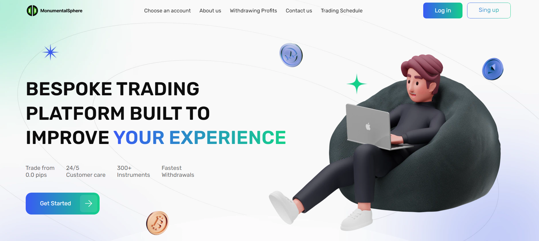 It’s doubtful that much effort was put into the official website of MonumentalSphere. It is only available in English, and the design appears too simple and generic. The images used look like standard stock photos, which do not add uniqueness or professionalism to the site. Illustrations with cartoon characters can give the impression of an unprofessional approach, which is unacceptable in the financial sector.