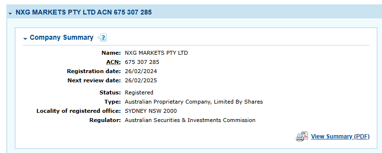 NXG Markets - ASIC