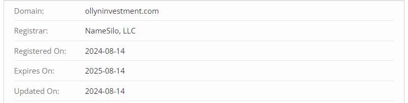 Was the broker really founded in 2003? This is mentioned in the “about us” section. On the homepage, a more realistic founding date of 2016 is listed. In the footer of the official website, it says 2008-2024. It’s unclear which dates to trust. The only thing you should trust are objective facts, such as the domain registration date, which shows when the platform was actually launched. If you check ollyninvestment.com through a specialized service, you’ll find that it was created in August 2024. So, all the other dates are just a pitiful attempt to fabricate their history and present themselves as an established brokerage with experience.