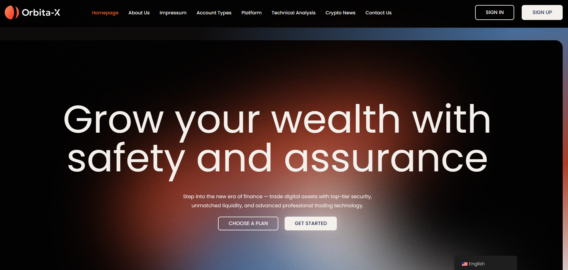 Every page of Orbita-X is soaked in pseudo-motivation: “Our reliable allies in blockchain and finance”, “Next-level security protocols”, and “Expert assistance & full regulatory adherence”. Plenty of grand words, but few facts. This is a key indicator of a low-quality resource. Legitimate and established companies focus not on slogans but on numbers: spreads, commissions, trading conditions, and licenses.