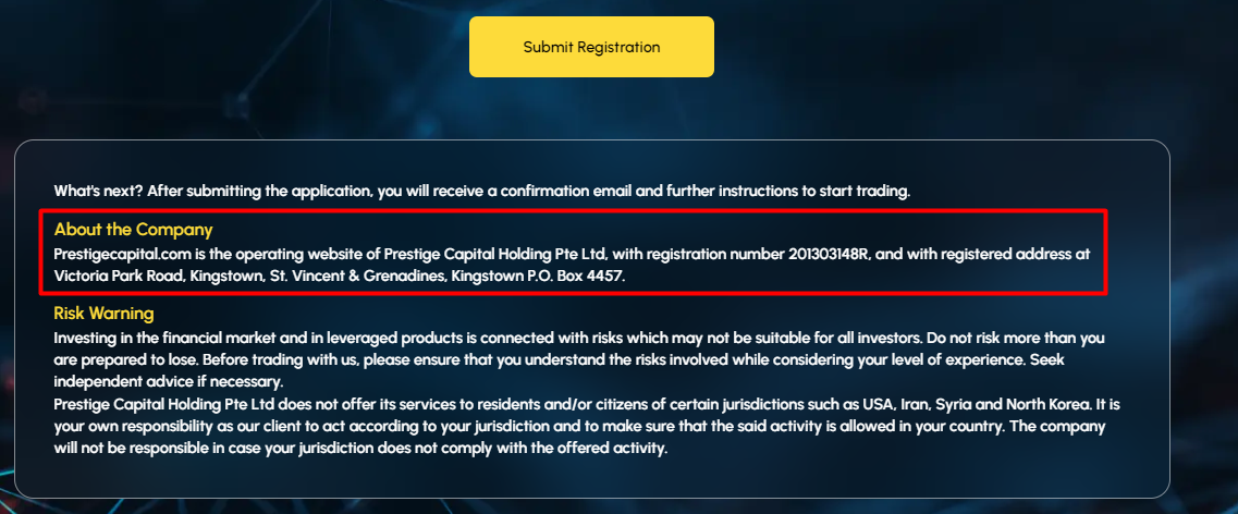 In conclusion, it’s worth noting that Prestige Capital Holding Pte Ltd lists fake contact details and conceals key trading conditions. There are simply too many signs of fraud gathered in one place.