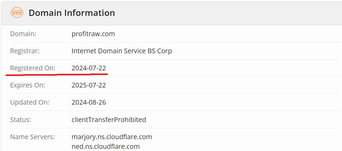The domain registration date of July 22, 2024, reveals that the company has been online for less than 5 months. If we consider the date of the last update, this timeline shrinks to just 3 months.
