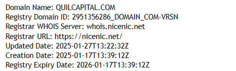 The domain quilcapital.com was registered only in January 2025. That means the company simply has no “experience” at all. All claims about a long history, 250,000 traders, and “global presence” are pure fabrication. In reality, the project has existed for less than a year — and during that short time, it has already appeared on regulators’ blacklists.