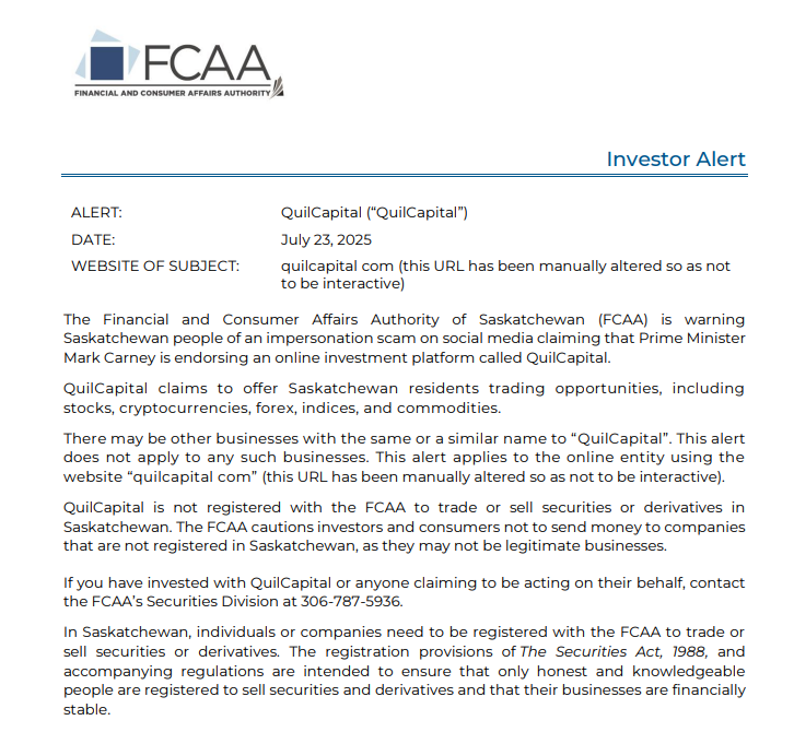 Now let’s move to the most important part — the real signs proving this is a scam rather than a safe trading broker. First, the company provides no license number or legal entity name. Meanwhile, Canadian regulators have already issued official warnings stating that QuilCapital is not registered to trade securities or derivatives. This means the company is not authorized to provide brokerage services in Canada, the United Kingdom, or any other jurisdiction. That’s direct evidence that the broker operates illegally.