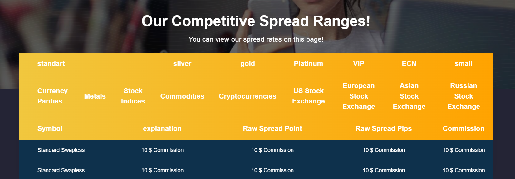 We would certainly like to know the actual average spreads involved, but as previously mentioned, the Spread Rates table lists only $10 per lot trading fees for all markets and account types.