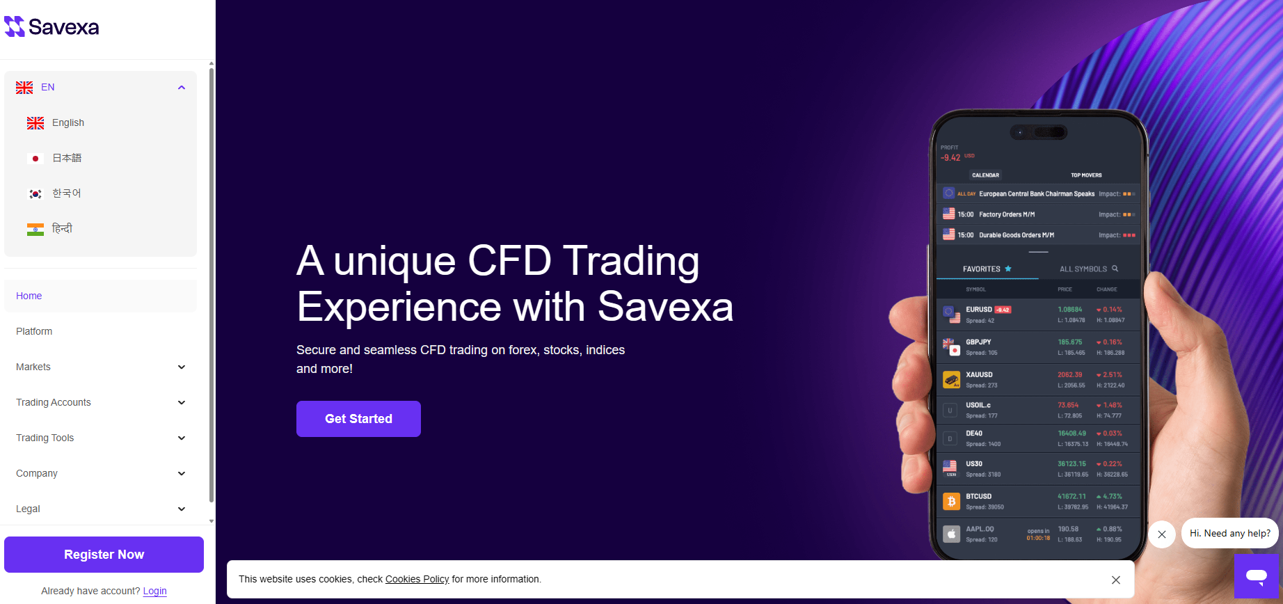 Otherwise, it is a typical brokerage website: standard sections about markets, accounts, advantages, and contacts. However, the lack of detailed facts about Savexa and the emphasis on flashy slogans instead of transparency are already concerning in itself.