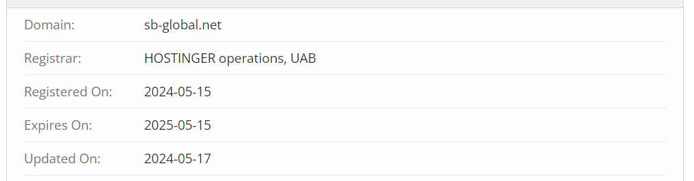 Even looking at the company’s period of existence, it can be confidently said that the statistics provided on the homepage of its website are simply fake. How can you determine when the firm began operating if the founding date is not indicated and there is no information about the legal entity? It’s simple: by the domain registration date. Currently, the scammers operate on the sb-global.net domain, which was registered in May 2024. However, they previously used the website stonebridgeventures.com, which is now unavailable. It was registered in 2018 but was up for sale until 2023, and it was precisely in May 2023 that it was purchased by fraudsters. So, SBGlobal has been operating for just over a year, which is not a serious timeframe.