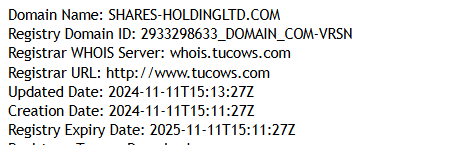 Furthermore, the platform has only been operational for a very short time. Shares Holding launched in November 2024, as confirmed by the domain registration date for shares-holdingltd.com. Their fake regulator, CADFIRA, lists a different website — sharesholding.com, but that domain was also only registered in 2024. In short, there is no experience here whatsoever.