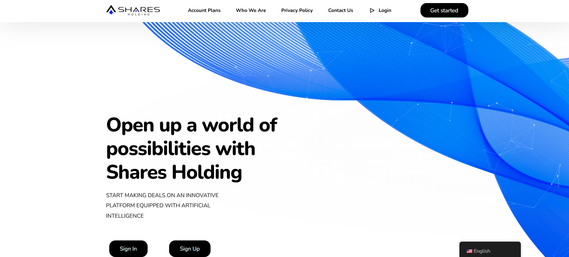 Upon entering the official website of Shares Holding, you’re immediately met with a typical façade of a pseudo-broker. Sure, at first glance it looks “modern”: blue waves, charts, a globe, numbers, and abstract diagrams. However, if you look closer, it’s just a basic template dressed up with fake visual elements.