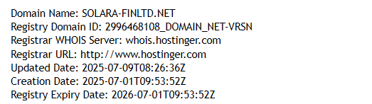 First, does Solara Finance Limited really have over four years of experience in the brokerage industry? The domain solara-finltd.net was registered on July 1, 2025 — less than a month ago. There is no trace of the company existing prior to that. So the claim of “4+ years” is a blatant lie.