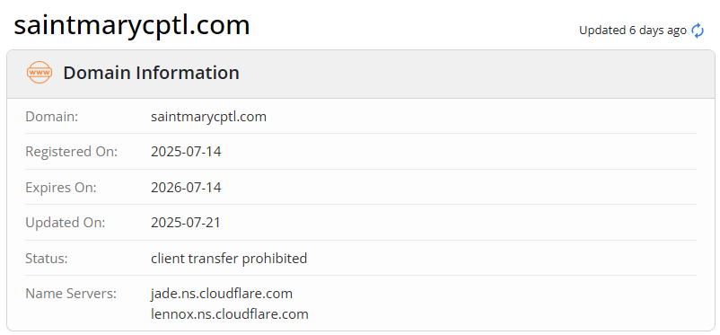 Another deception involves the company’s claimed founding date. The “About Us” section states that St. Mary Capital has been operating since 2012. They then reference “10+ years of experience”, “hundreds of thousands of clients”, and “a long history of growth”. The facts show the opposite. The domain saintmarycptl.com was registered in 2025. Before that, the company did not exist — not in documentation, not in news, not in corporate registries. No LinkedIn mentions, no articles, no website archives.