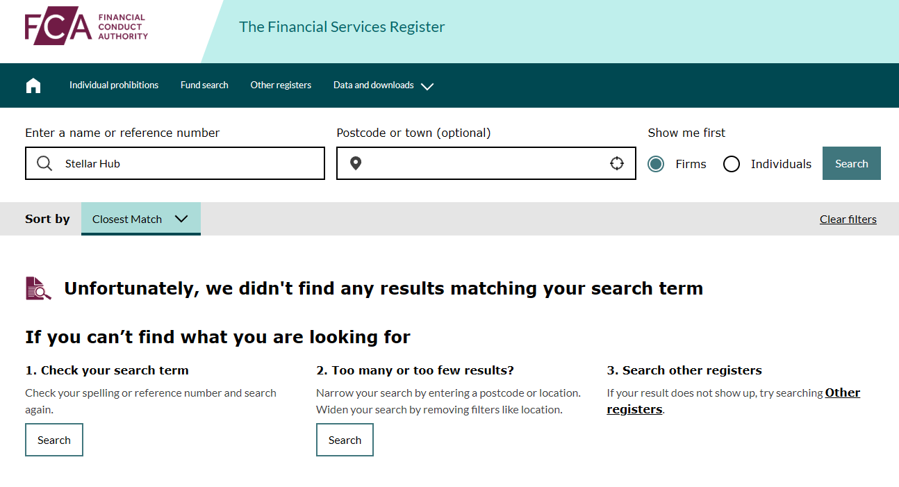 If a company calls itself Swiss, it would be logical to expect an FINMA license. Yet Stellar Hub is also missing there. It does not appear on the company registry or among licensed brokers. This means that both the Zurich address and the claimed regulation are fake. It is a textbook example of a sham “office” and a forged license, serving only as window dressing. These are direct proofs that this is a scam project.
