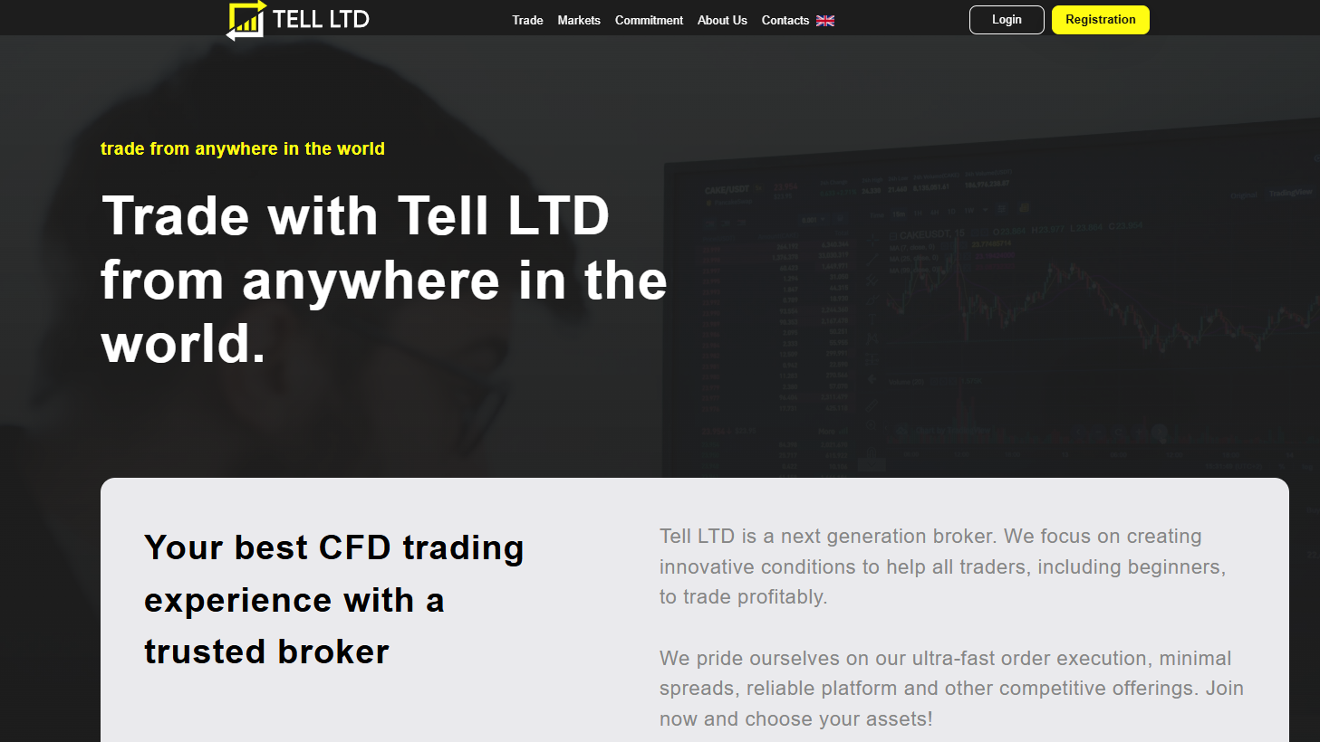 What stands out immediately is the company’s total lack of transparency. Tellltd.com either forgot or deliberately chose not to disclose exact commission rates and spreads, which are the most critical trading conditions. How are traders supposed to determine whether it is profitable to trade here or not? Furthermore, the broker does not offer a demo account, meaning users cannot test the platform’s functionality without risking real money.