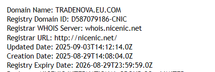 The company boasts about its “many years of experience” and its “mission”, but a quick domain check pulls off the mask. The domain tradenova.eu.com was registered only in August 2025. That makes it a brand-new one-day project trying to pass itself off as a seasoned player. In the industry, this is a classic scam tactic: flashy words to cover up a zero history.