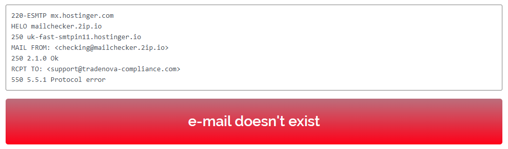 However, the biggest problem lies elsewhere. The broker lists a fake email address. We checked it out, and it turned out to be fake. Such an email address does not exist.