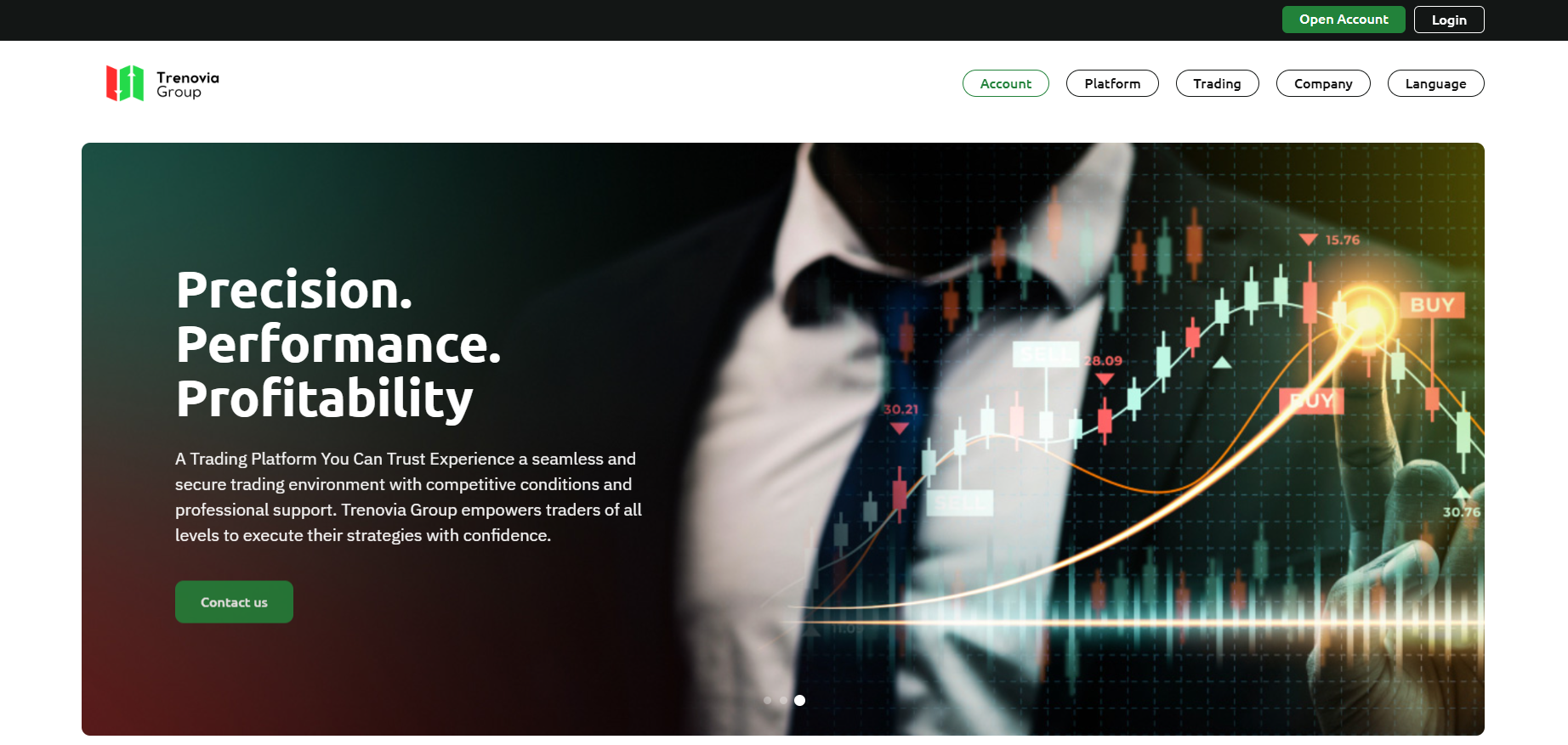 The site is filled with cliché phrases like “Precision. Performance. Profitability” or “Trade Smarter”. It feels as if there is some universal aggregator of meaningless and pompous motivational phrases from which all such companies source their website content.
