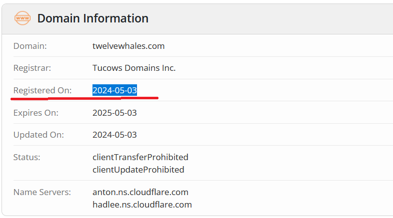 The domain currently used by the company — twelvewhales.com — was registered on May 3, 2024. At the time of writing this review, the broker has existed for only two months. Of course, they refrain from publishing information about the creation date and significant events.