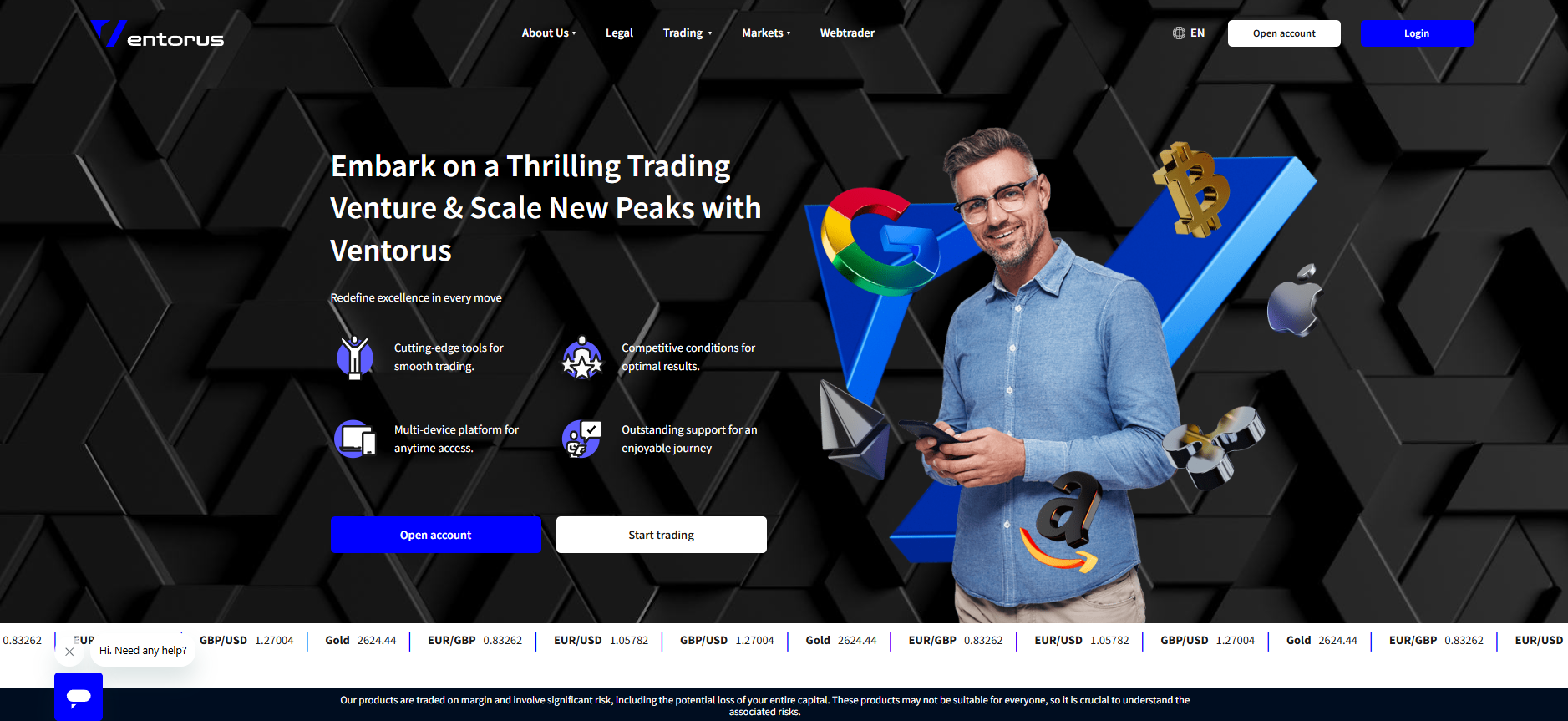 The content also raises concerns. The site is filled with grandiose phrases like “Embark on a Thrilling Trading Venture” and “Redefine Excellence in Every Move”. What do these slogans actually mean? Where’s the substance? What specific tools or features does Ventorus offer that are supposed to impress? Instead of meaningful answers, you’re bombarded with empty marketing promises.