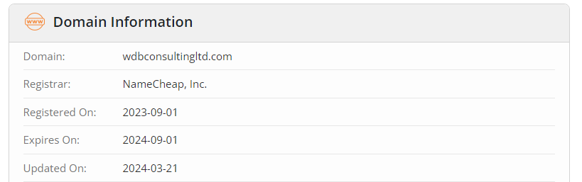 However, there is another aspect that confirms this and also shows that WDB Consulting LTD has been operating for a very short time. This is the date of their domain registration. It was registered in September 2023. How could the company operate without an official website? It seems that when the website appeared, the firm started looking for new victims to scam through chargeback. Interestingly, the first comments on the internet also began to be published only in September 2023.