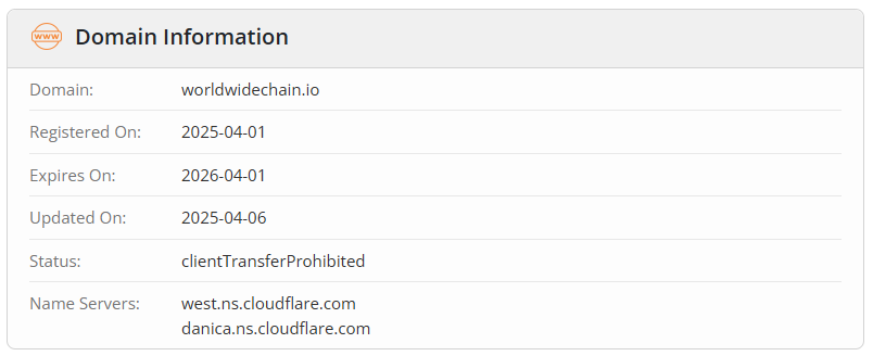 It is also important to highlight operating history. Worldwidechain does not specify its founding date anywhere, which is already suspicious. A domain check shows that the website was registered only in 2025, and that is when the project was launched. This means there is no “long-standing history” — it is a newly created anonymous project merely pretending to have years of experience.