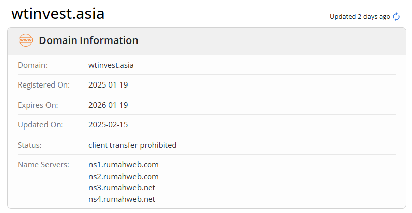 And one more important red flag is the time in operation. The broker lies about existing since 2020. In reality, this platform has been operating since 2025, because that is the year the domain of the official website, wtinvest.asia, was registered. Nothing but lies and fake claims.