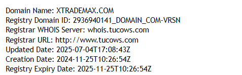So, how long has this company been in business? XTradeMAX does not disclose its founding date because it has something to hide. The domain xtrademax.com was registered on November 25, 2024. That means the company has not even been around for a full year. Yet it already claims “years of experience”, “thousands of assets”, and “the best analysts in the industry”. This is a lie. They have nothing behind them. Real brokers are easy to verify — Pepperstone, for example, has been operating since 2010, with tens of thousands of reviews, a history of platform updates, and verifiable licenses. In contrast, XTradeMAX is just a newborn site with aggressive marketing.